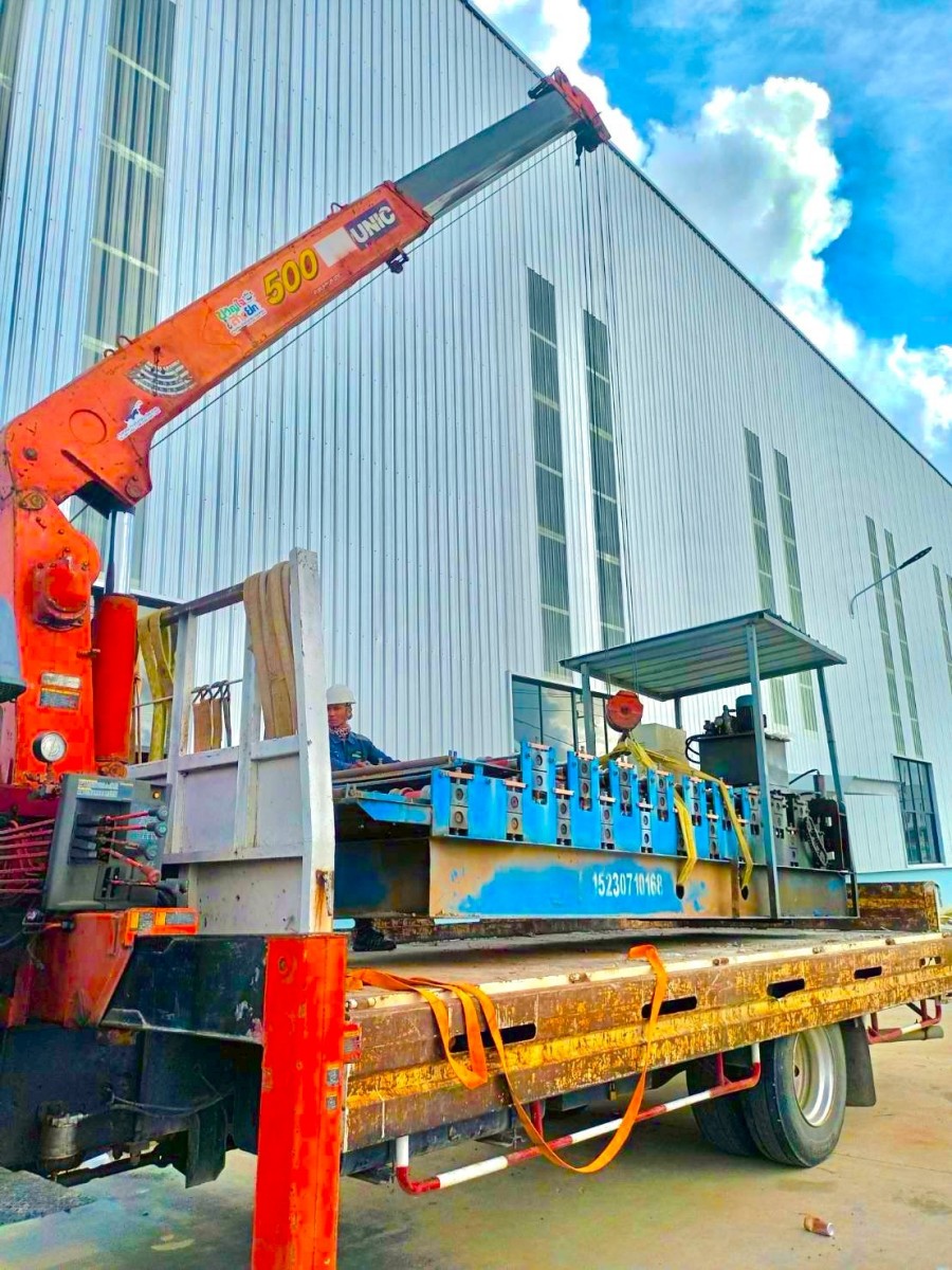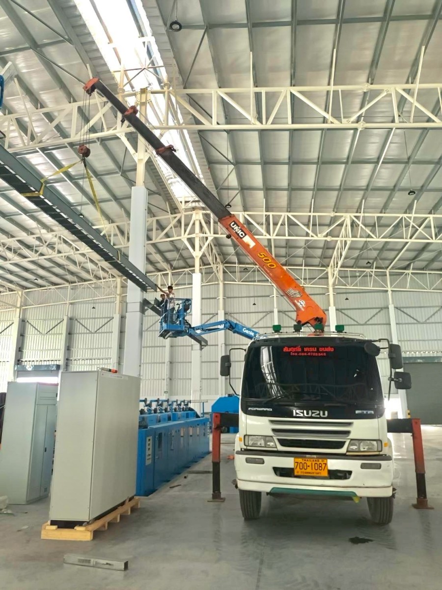 2. ติดตั้งโครงสร้างเหล็ก: ยกและวางโครงเหล็ก, แผ่นเมทัลชีท, หรือโครงสร้างหลังคา