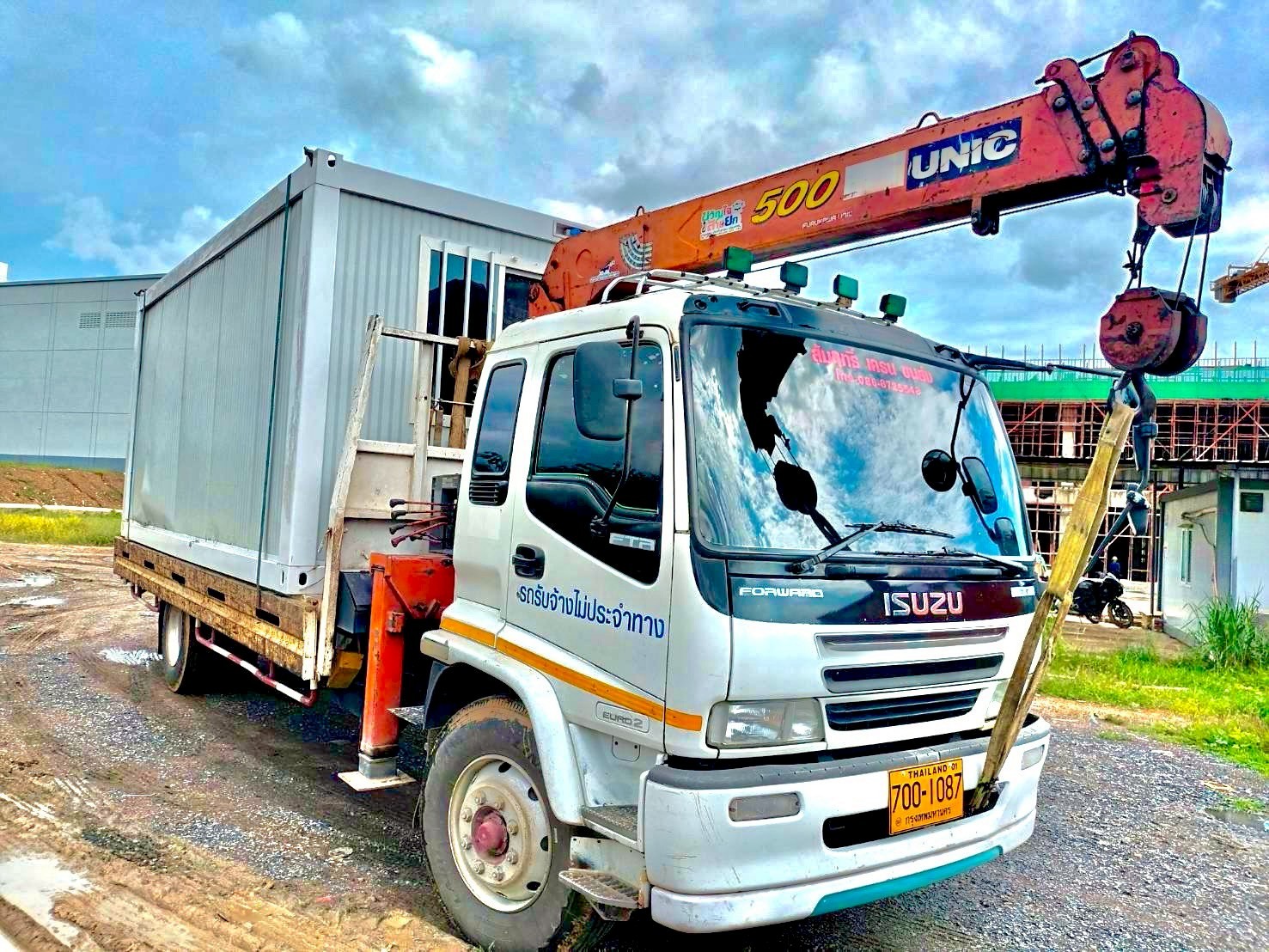 3. ขนย้ายและติดตั้งตู้: ยกตู้คอนเทนเนอร์, ตู้สำนักงานเคลื่อนที่ (Container Office), หรือตู้ยาม